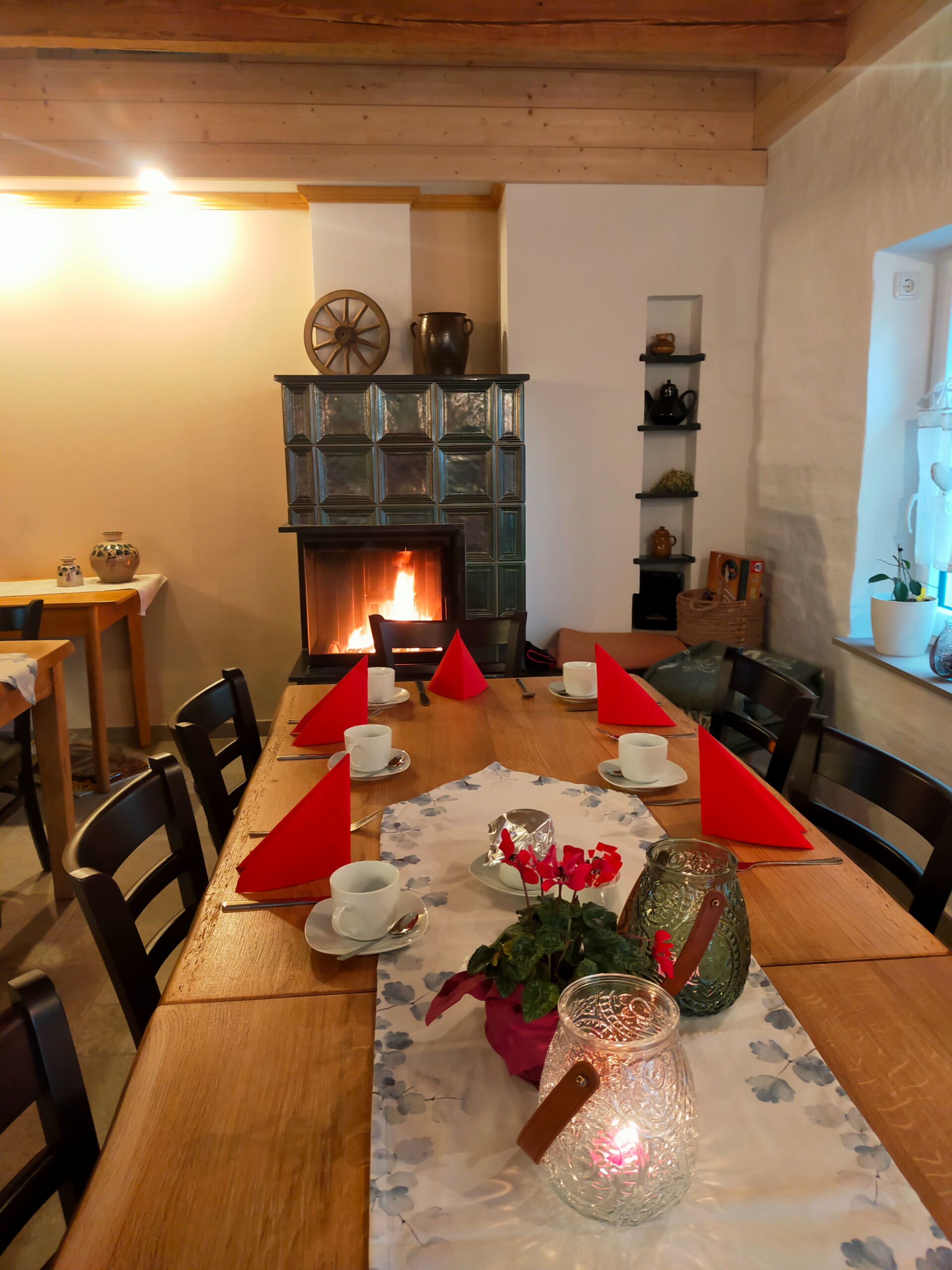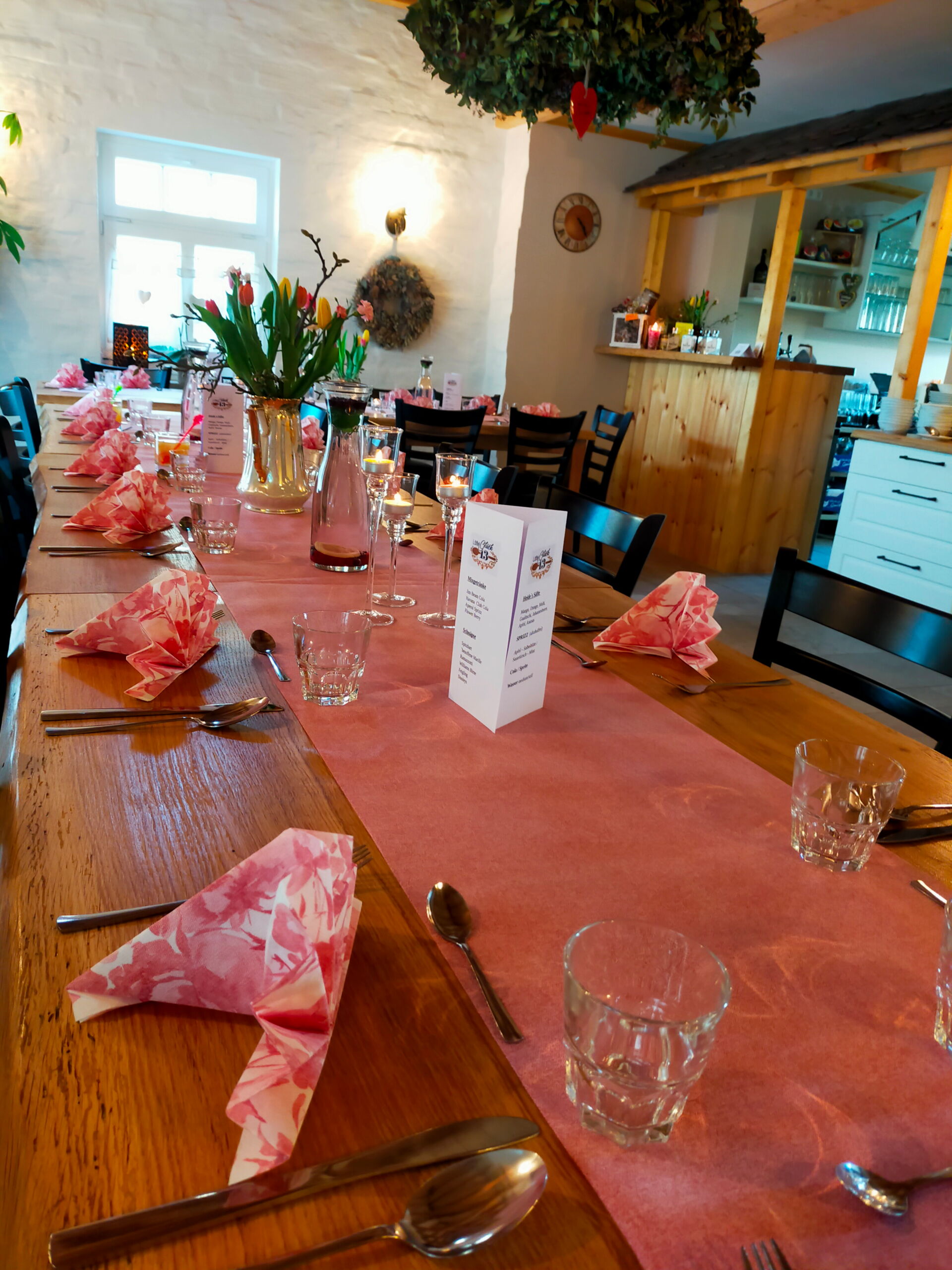 Unser Café "13 Löffel Glück" (Alte Dorfstraße 13) bietet als einladender Frühstücksraum allen Gästen unserer Pension die Möglichkeit perfekt in den Tag zu starten. Für Anwohner und Ausflügler öffnen wir zudem jeden Sonntag unsere Türen! Freuen Sie sich auf hausgemachten Kuchen und frischen Kaffee in einem besonders einladenden Ambiente. An heißen Sommertagen bieten wir außerdem ein ganz besonderes Highlight: frisch gezapftes Eis aus unserer Eismaschine.